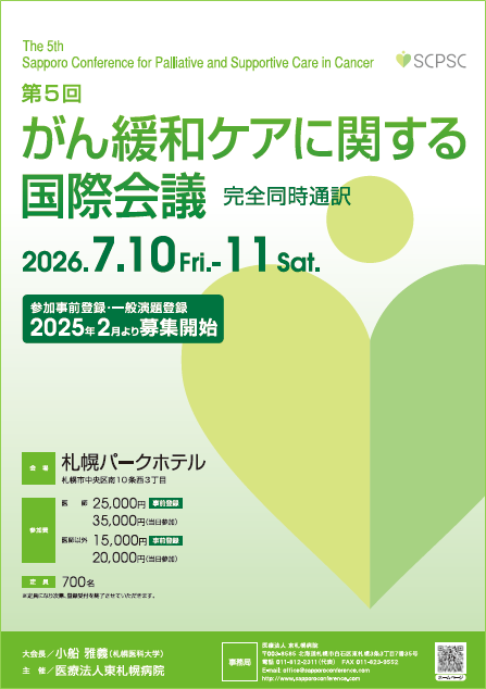 「がん緩和ケアのオリンピック」とも称されるSapporo Conference for Palliative and Supportive Care in Cancer(SCPSC)」は、2026年7月に第5回目の開催を迎える運びとなりました。